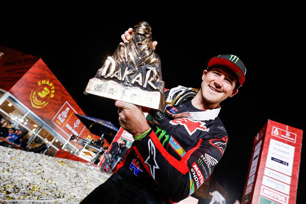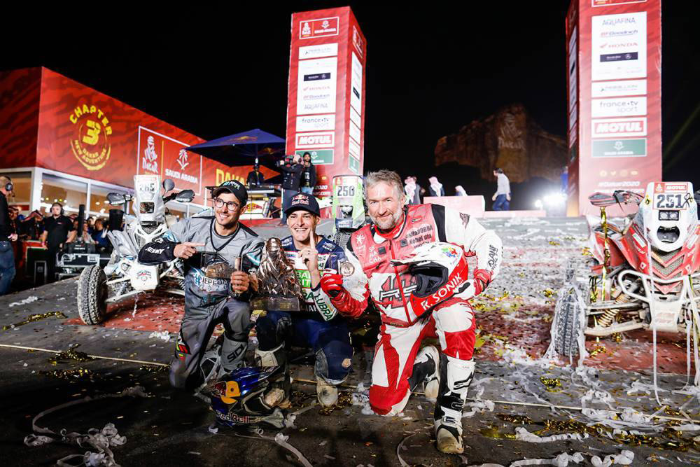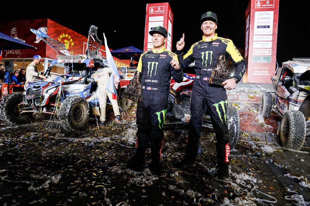 Ricky Brabec (motocykle), Ignacio Casale (štvorkolky), Carlos Sainz, Lucas Cruz (automobily), Casey Currie, Sean Berriman (side by side) a Andrej Karginov, Andrej Mokejev, Igor Leonov (kamióny) – deväť mien, ktoré kraľovali na Rallye Dakar 2020 v Saudskej Arábii.